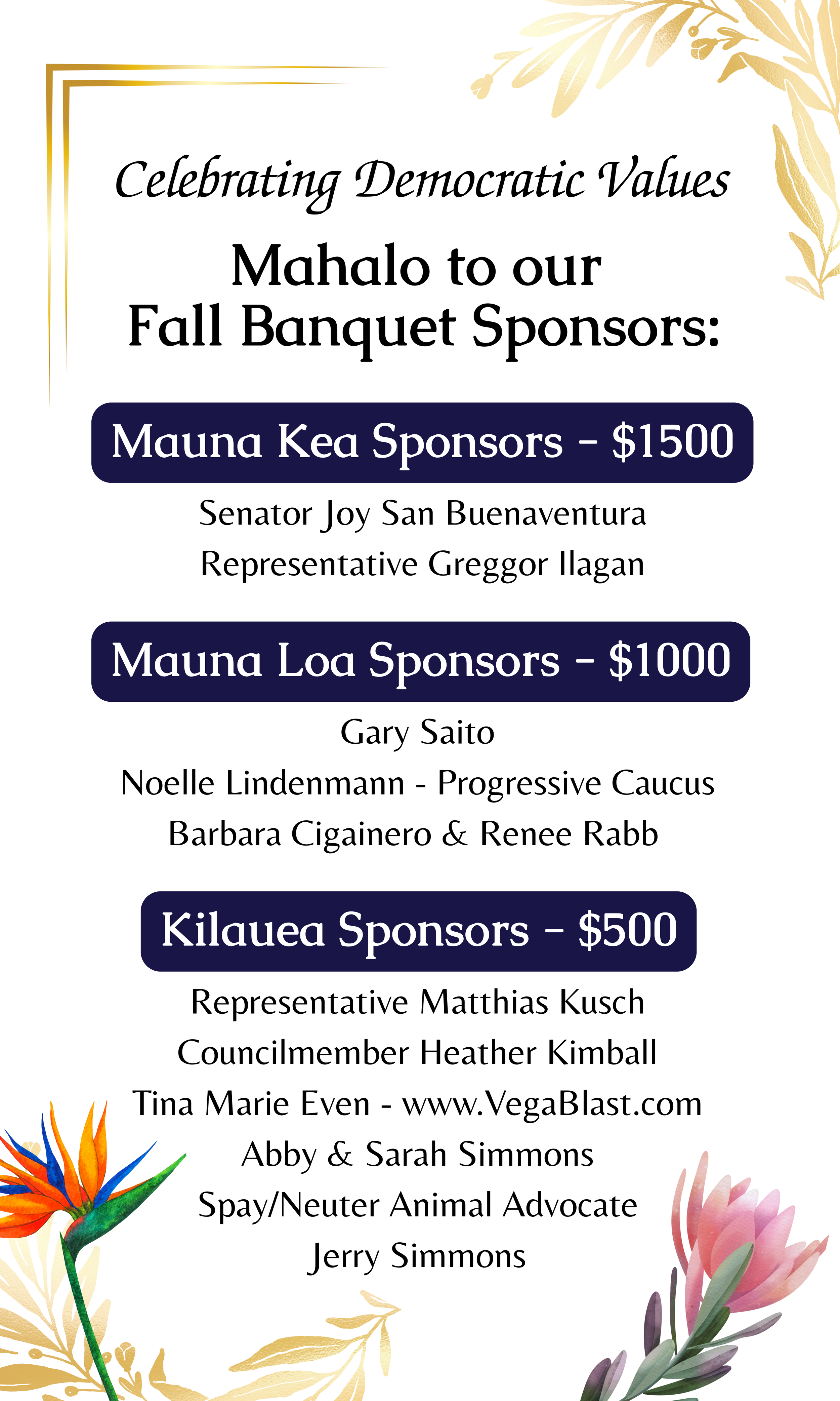 SUPPORT the Hawai’i County Democrats with a regular contribution and participate in party events, meetings and elections on the Big Island